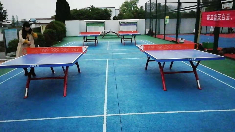 老旧城区里安装的乒乓球台